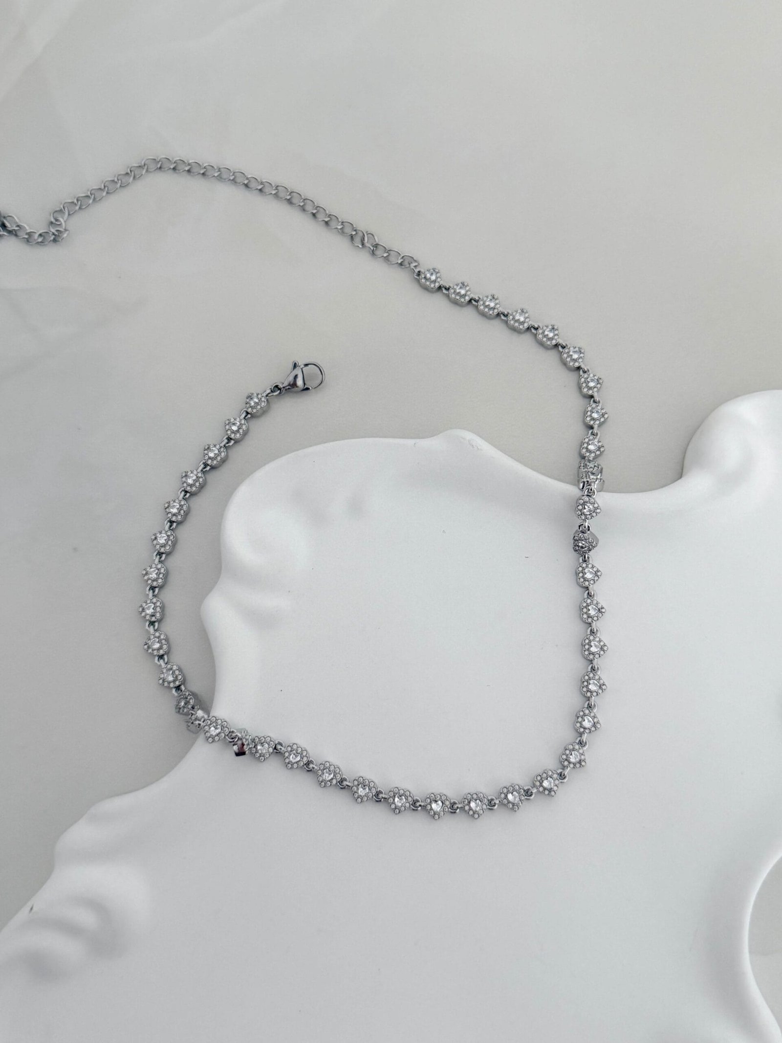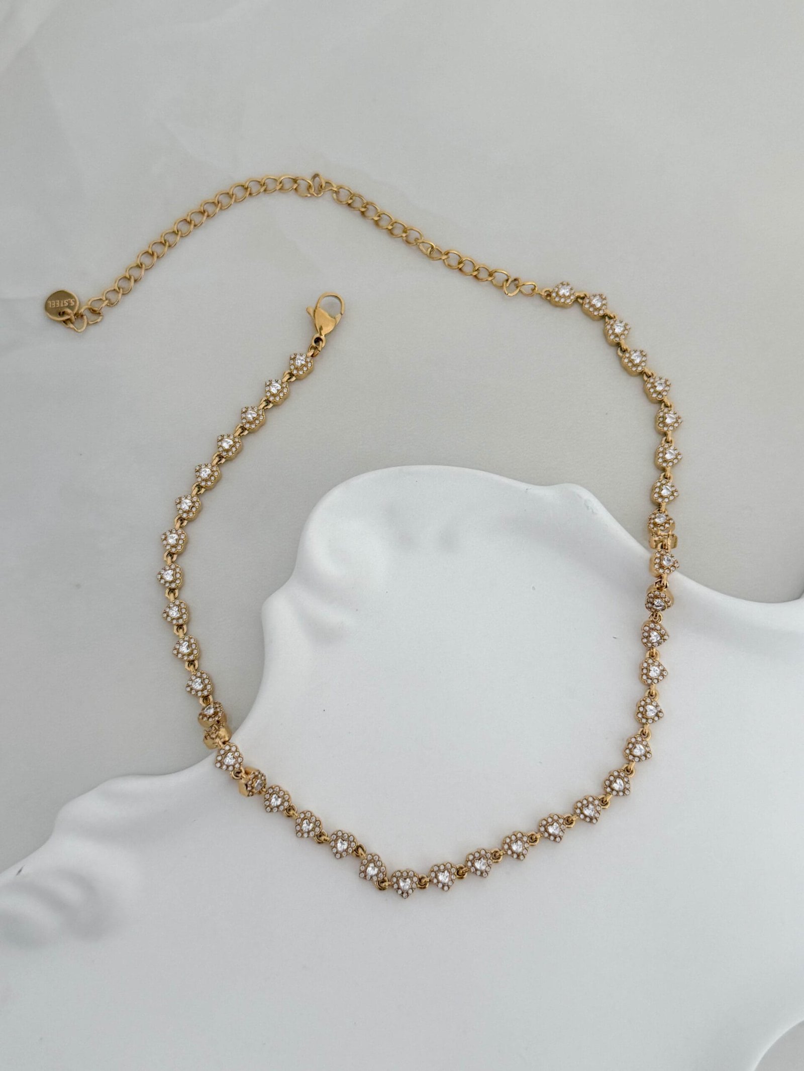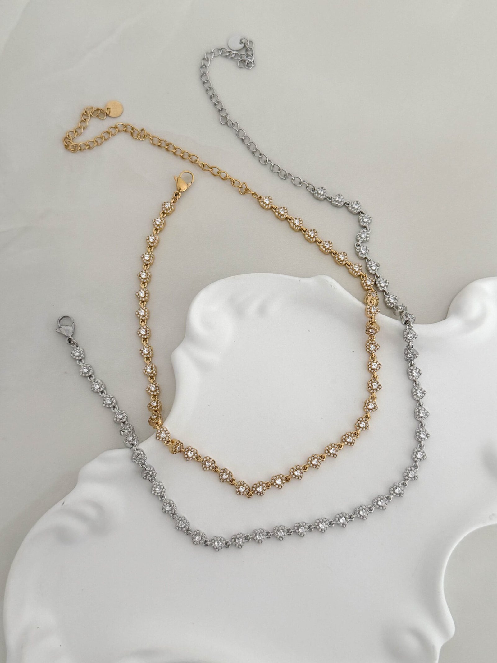 Ρομαντικό κολιέ με διαδοχικές καρδιές, διακοσμημένες με λαμπερά ζιργκόν που χαρίζουν κομψή και διακριτική λάμψη. Ο θηλυκός σχεδιασμός του το καθιστά ιδανικό για καθημερινή χρήση αλλά και για πιο ιδιαίτερες εμφανίσεις.