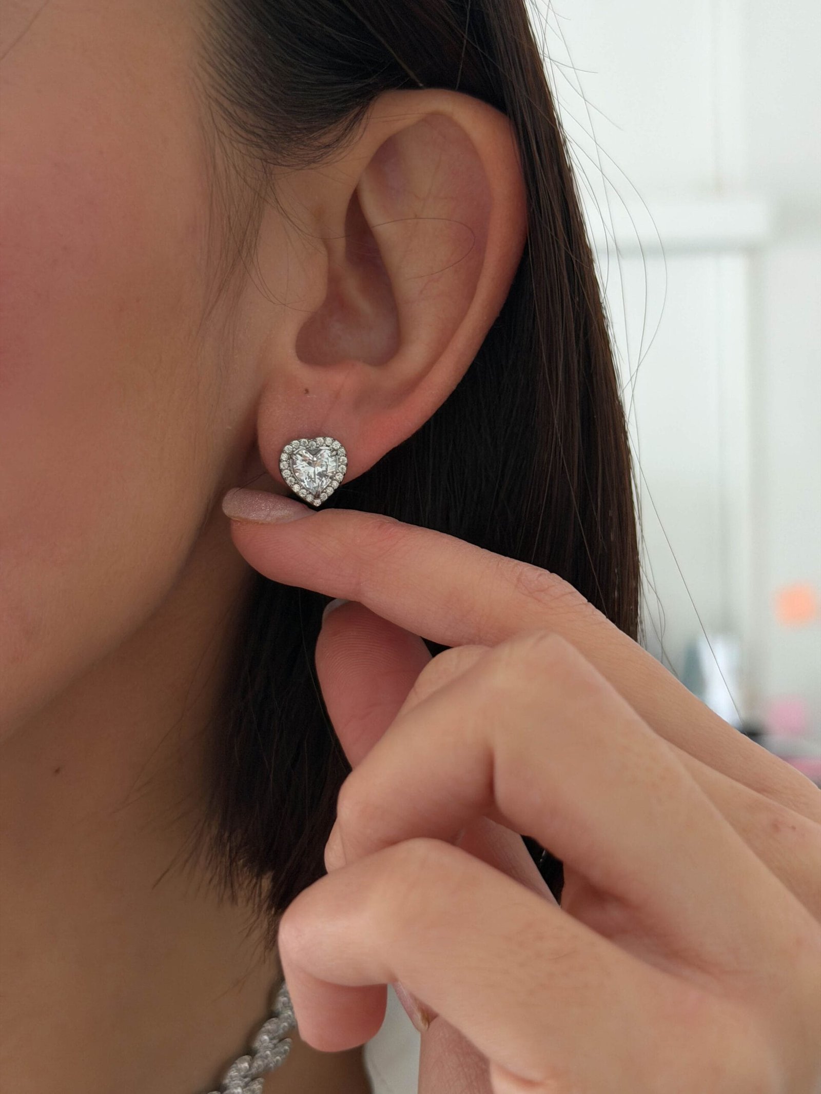 Κομψά καρφωτά σκουλαρίκια σε σχήμα καρδιάς με κεντρικό λαμπερό κρύσταλλο και περίγραμμα από μικρά στρας που χαρίζουν εκλεπτυσμένη λάμψη. Ρομαντικό και διαχρονικό σχέδιο, ιδανικό για κάθε περίσταση. Διατίθεται σε χρυσό και ασημί τόνο.
