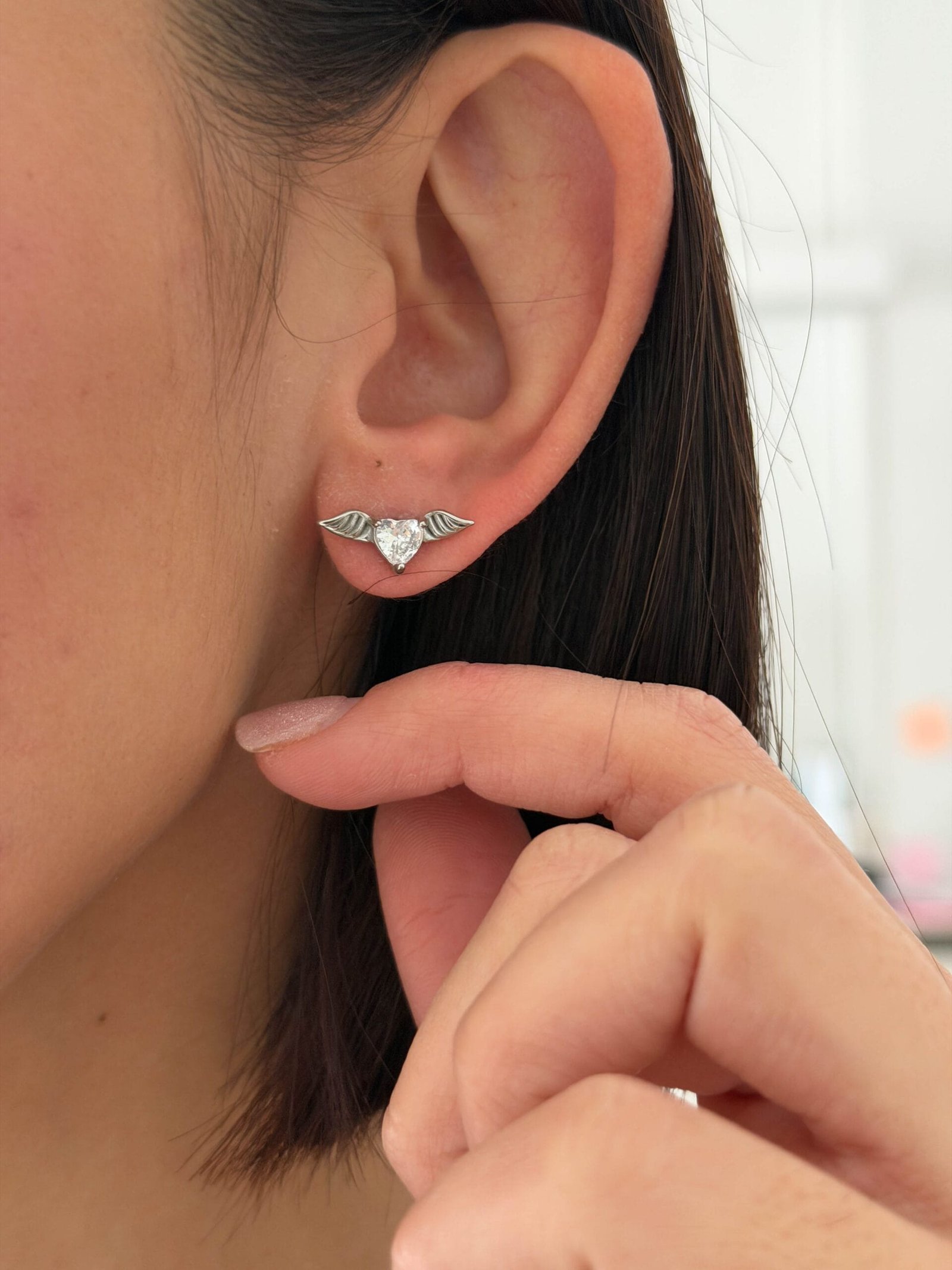 Καρφωτά σκουλαρίκια με καρδιά–κρύσταλλο και μικρές φτερούγες στο πλάι, που χαρίζουν παιχνιδιάρικη αλλά κομψή λάμψη. Ένα ρομαντικό σχέδιο ιδανικό για καθημερινές εμφανίσεις ή για ξεχωριστό δώρο. Διατίθεται σε χρυσό και ασημί τόνο.