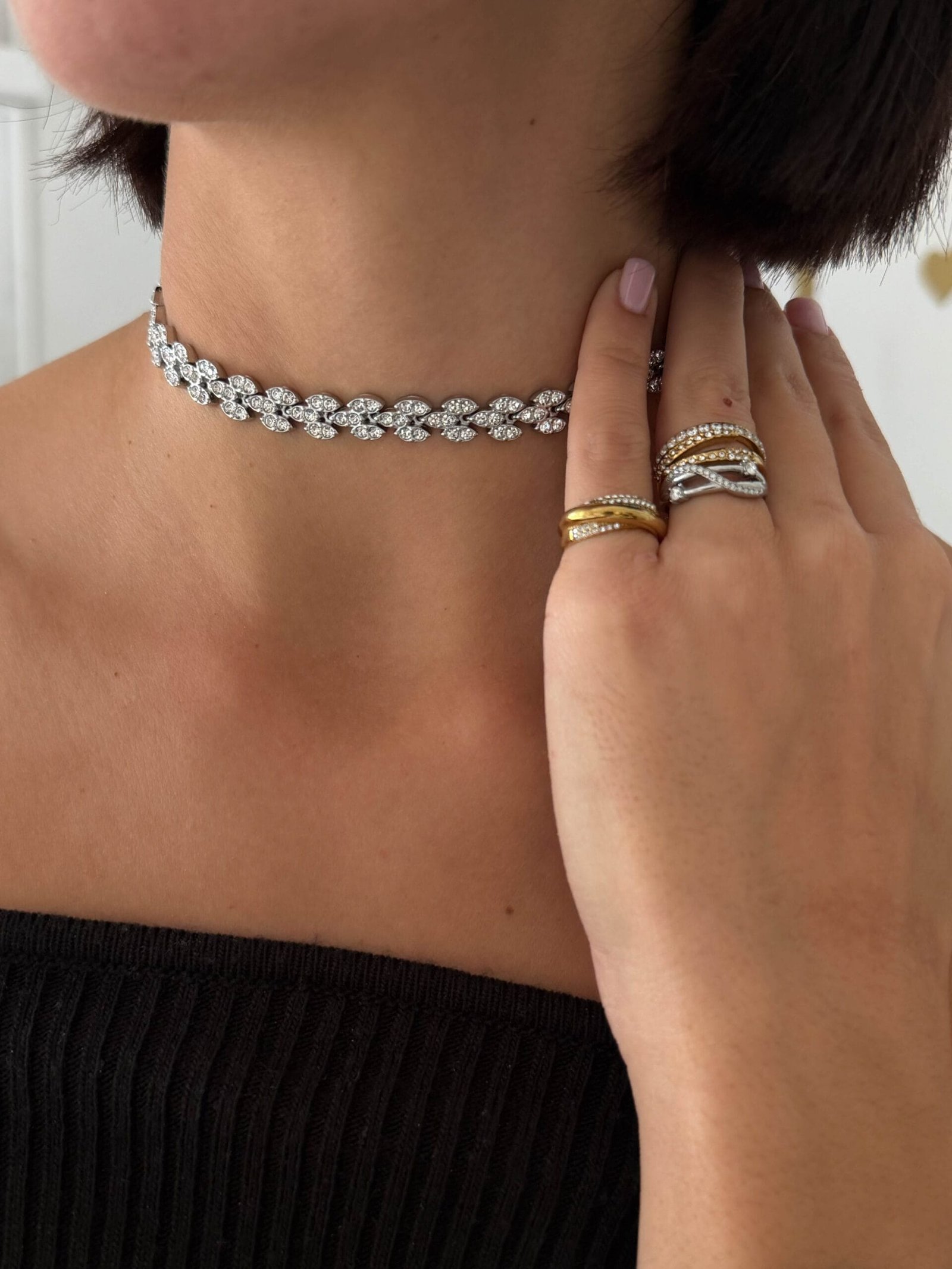 Ένα statement τσόκερ που λάμπει από κάθε γωνία. Καλυμμένο εξολοκλήρου με στρας,