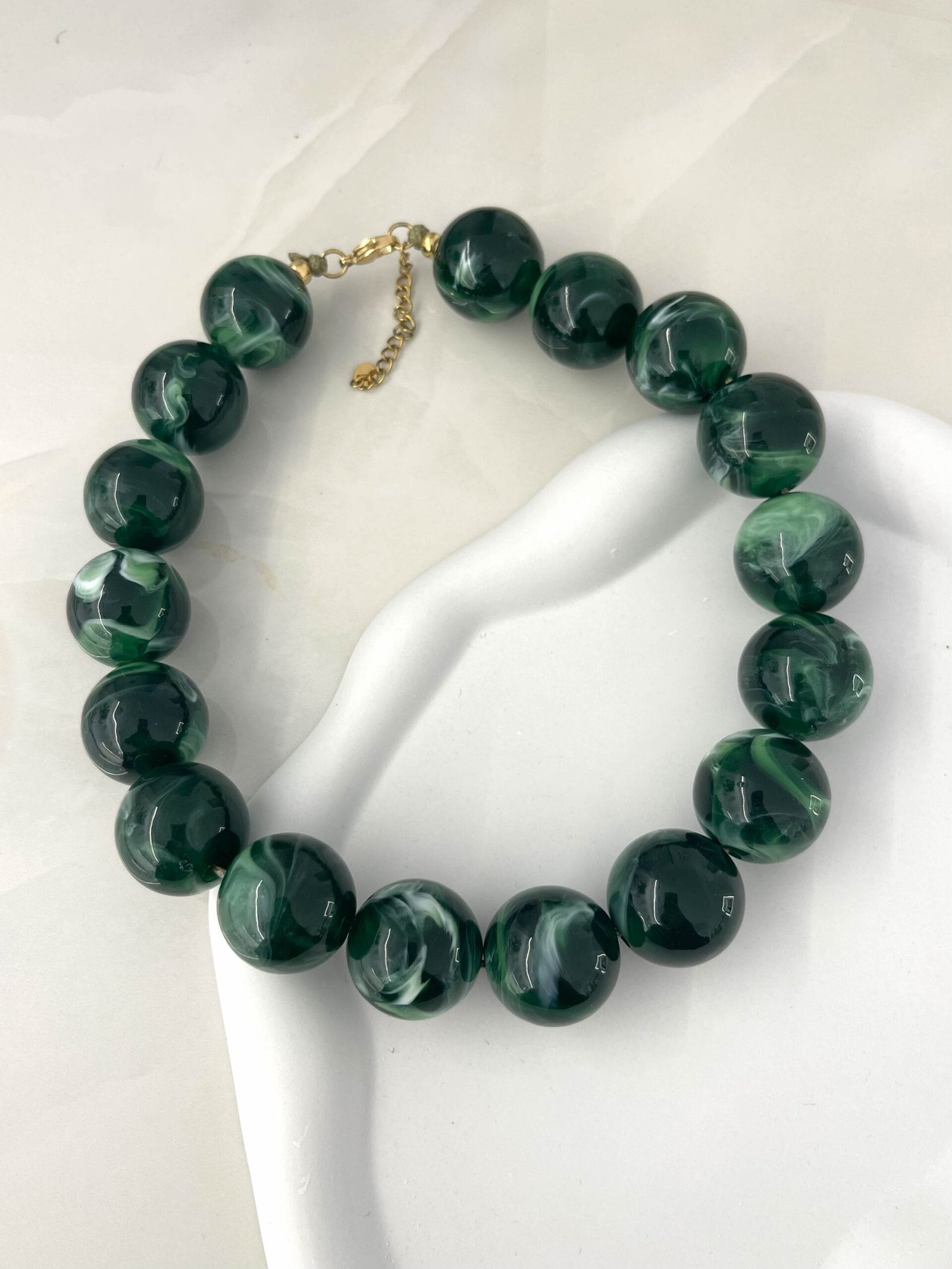 Μεγάλες κοκάλινες χάντρες σε σμαραγδί και μαύρο — ένας φυσικός συνδυασμός που χαρίζει χαρακτήρα σε κάθε look.