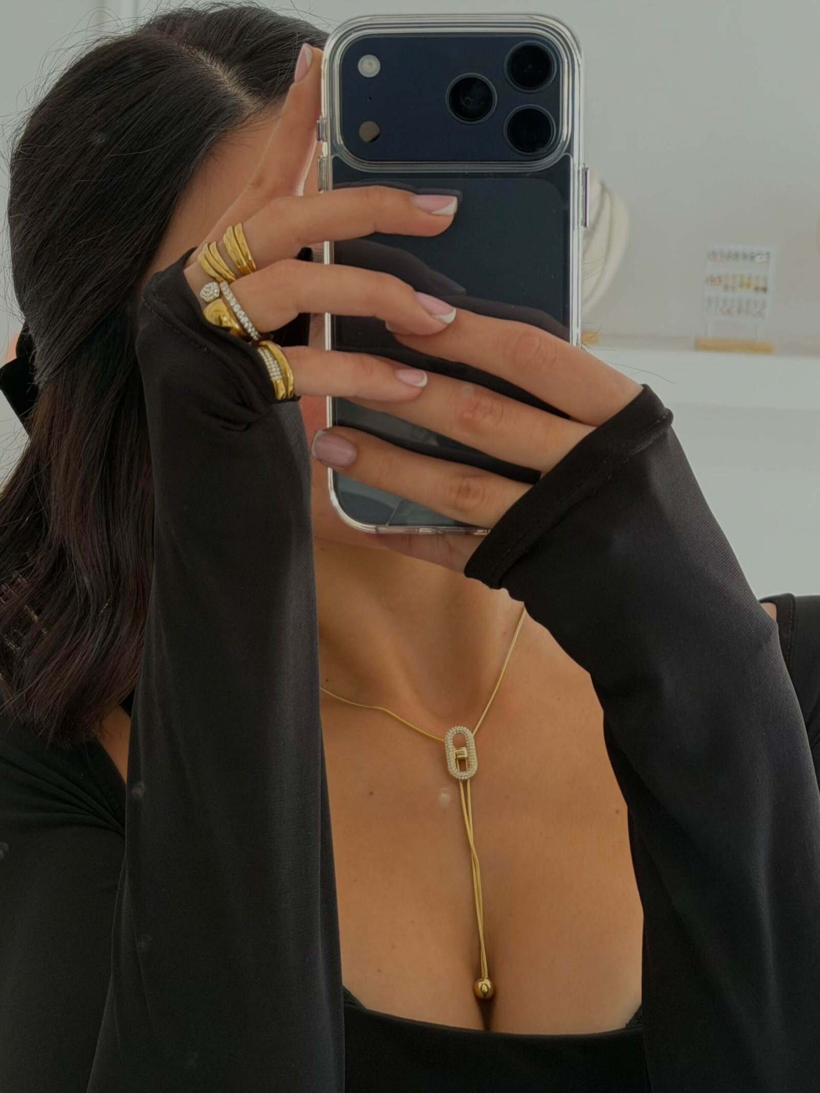 Το Eterna Move είναι ένα εκλεπτυσμένο κολιέ διαθέσιμο σε χρυσό και ασημί,