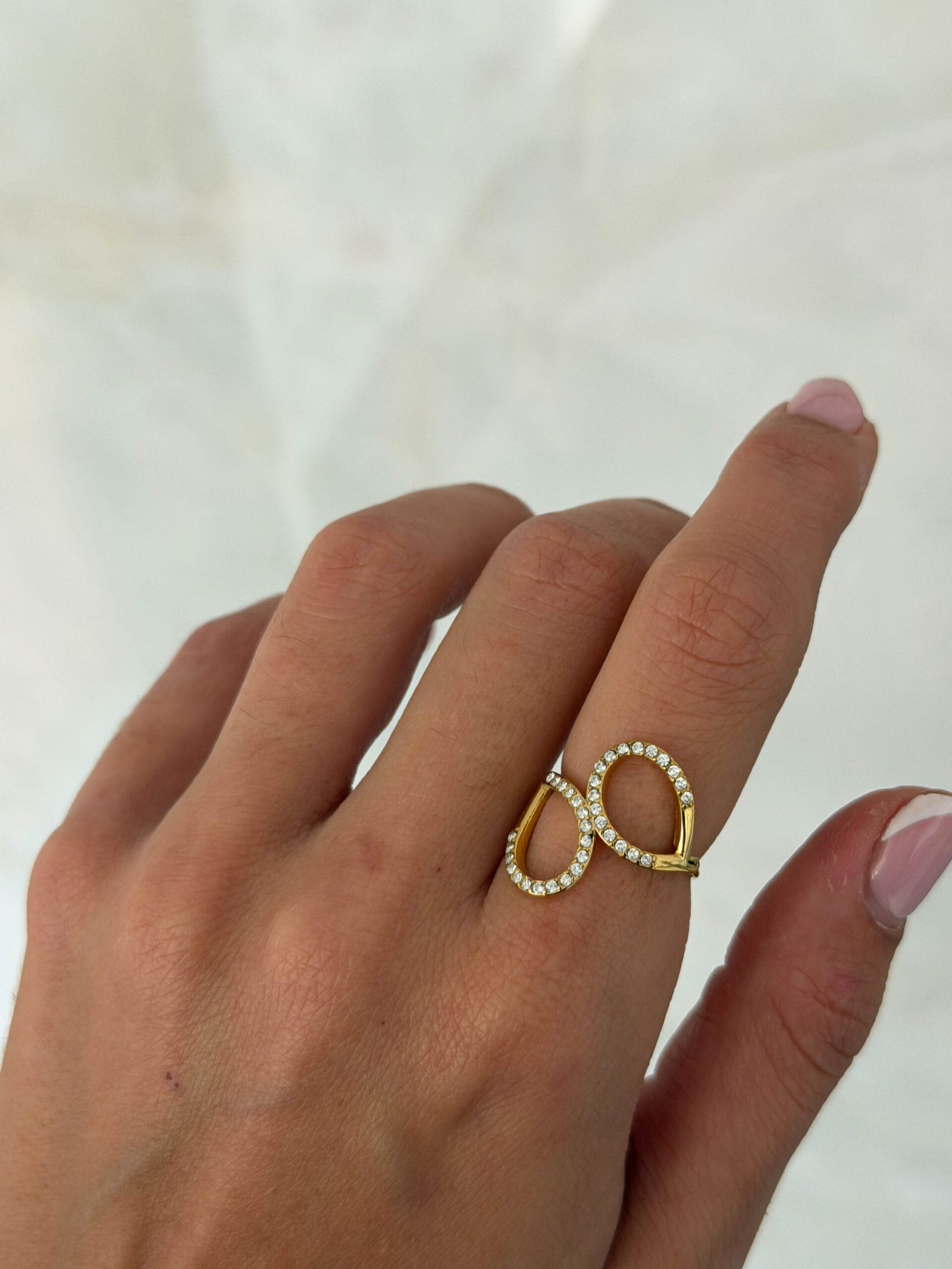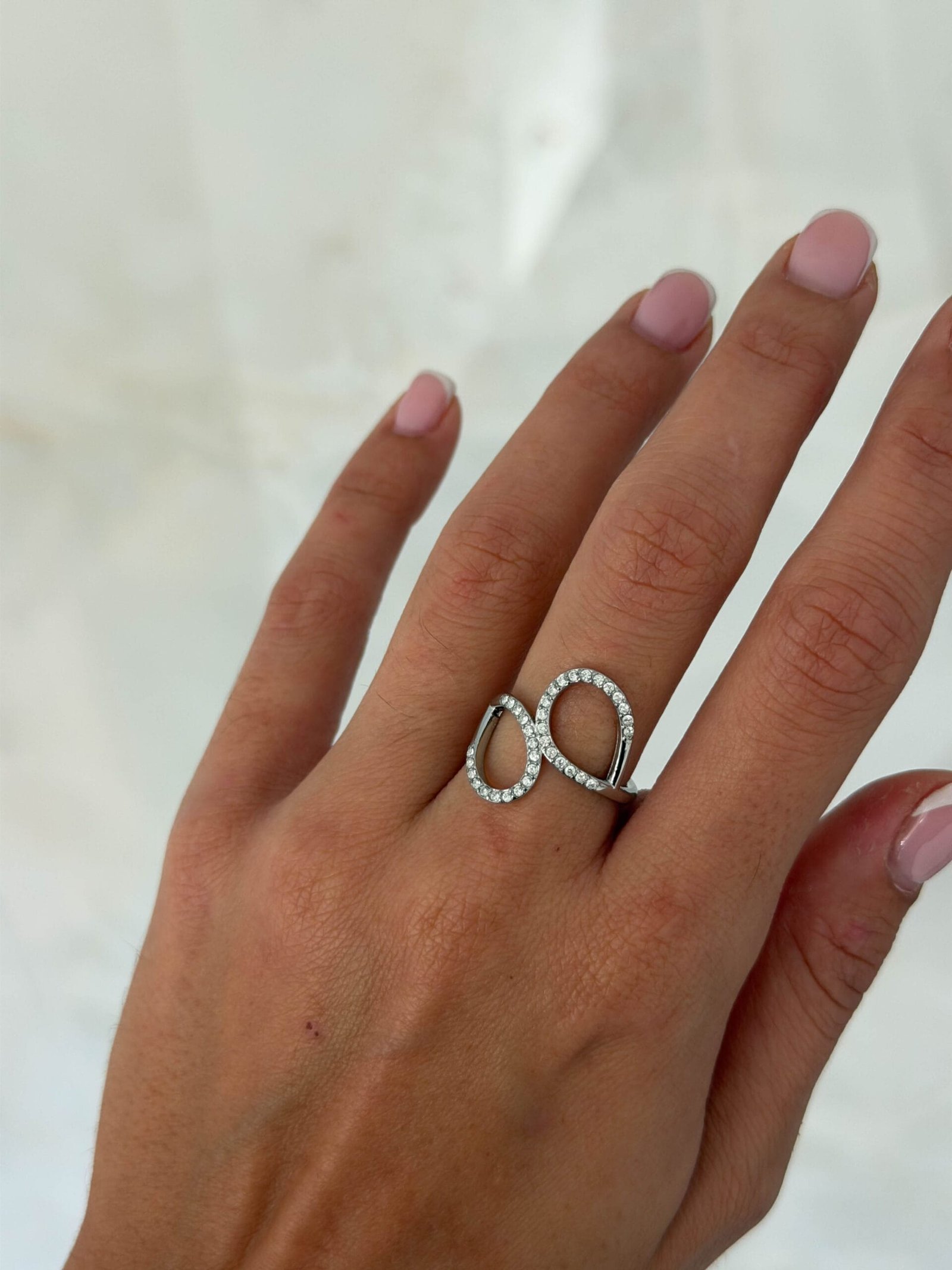 Οι δύο μεταλλικοί κρίκοι ενώνονται με αρμονία, σχηματίζοντας ένα δαχτυλίδι που εκπέμπει πολυτέλεια και διαχρονικότητα.
