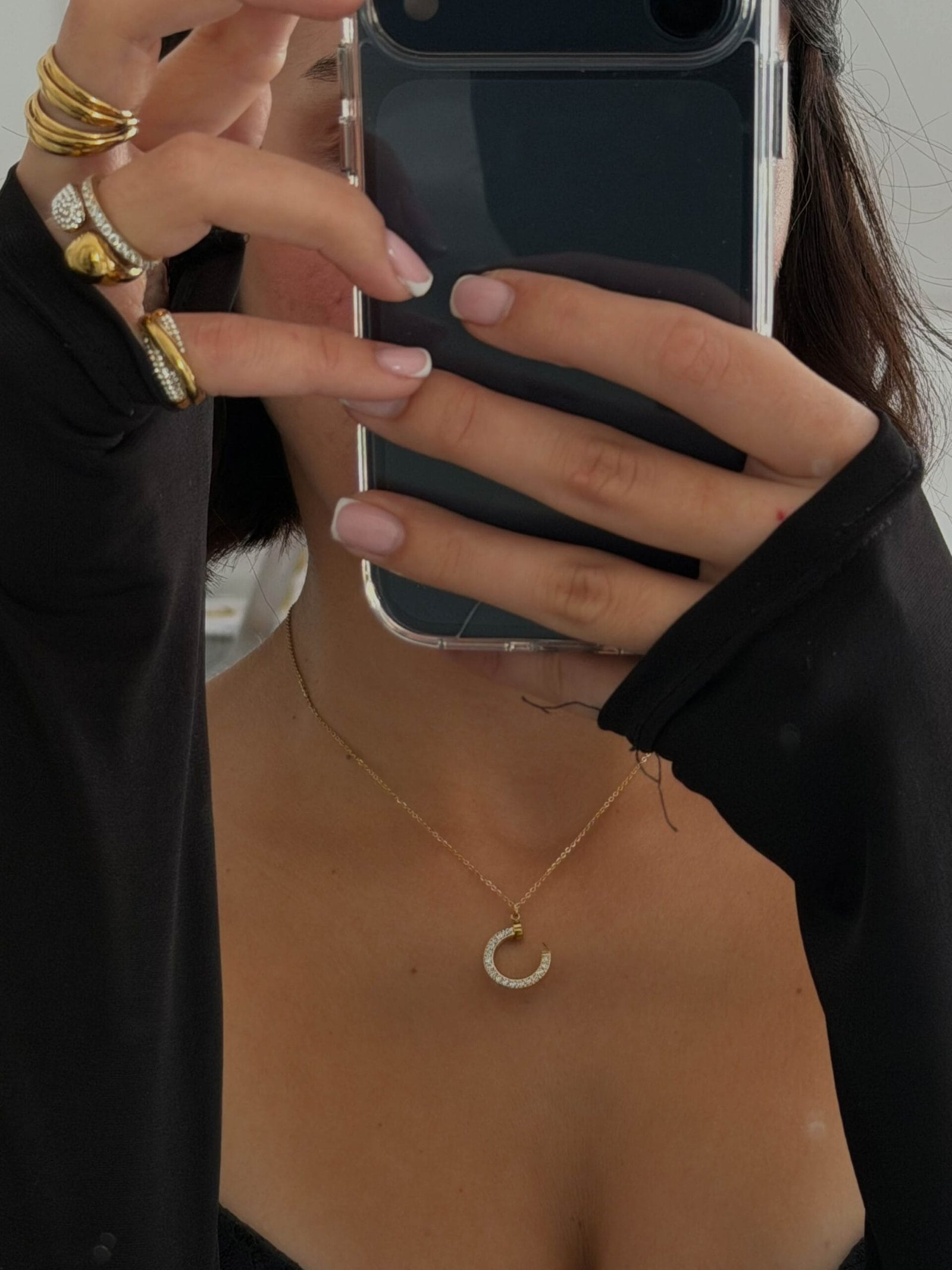Το χρυσό του φινίρισμα αγκαλιάζει τον λαιμό με διακριτική λάμψη,