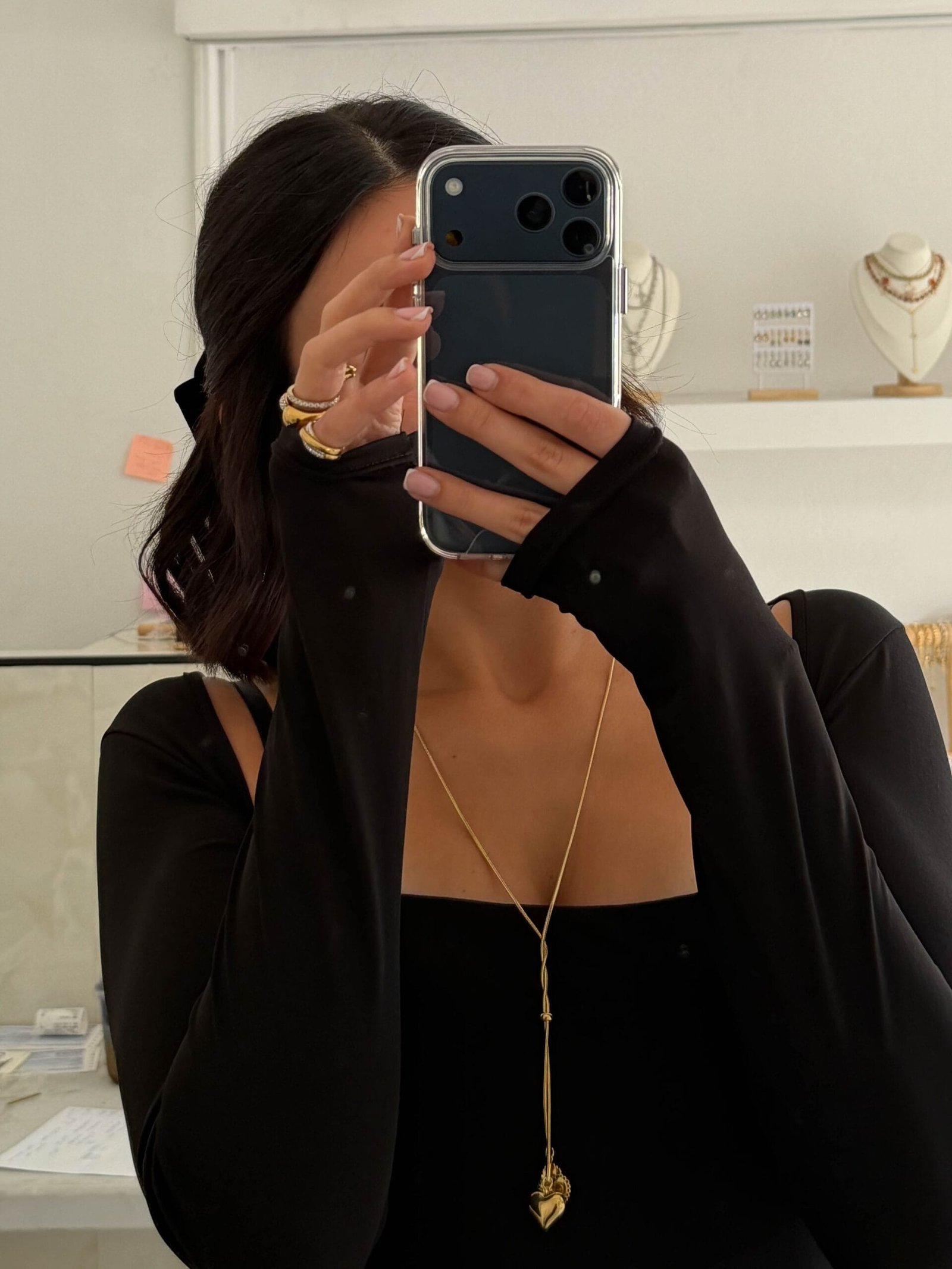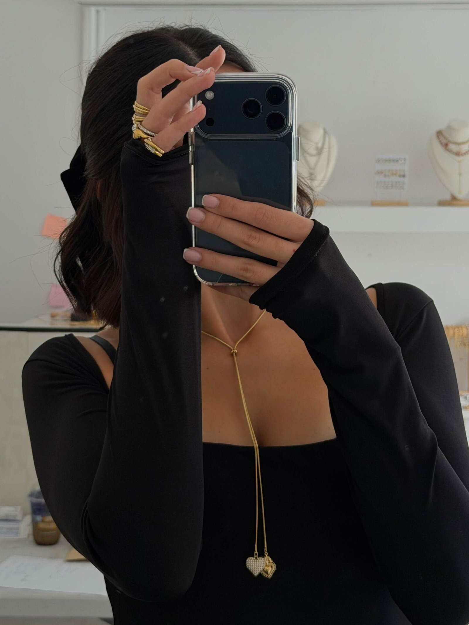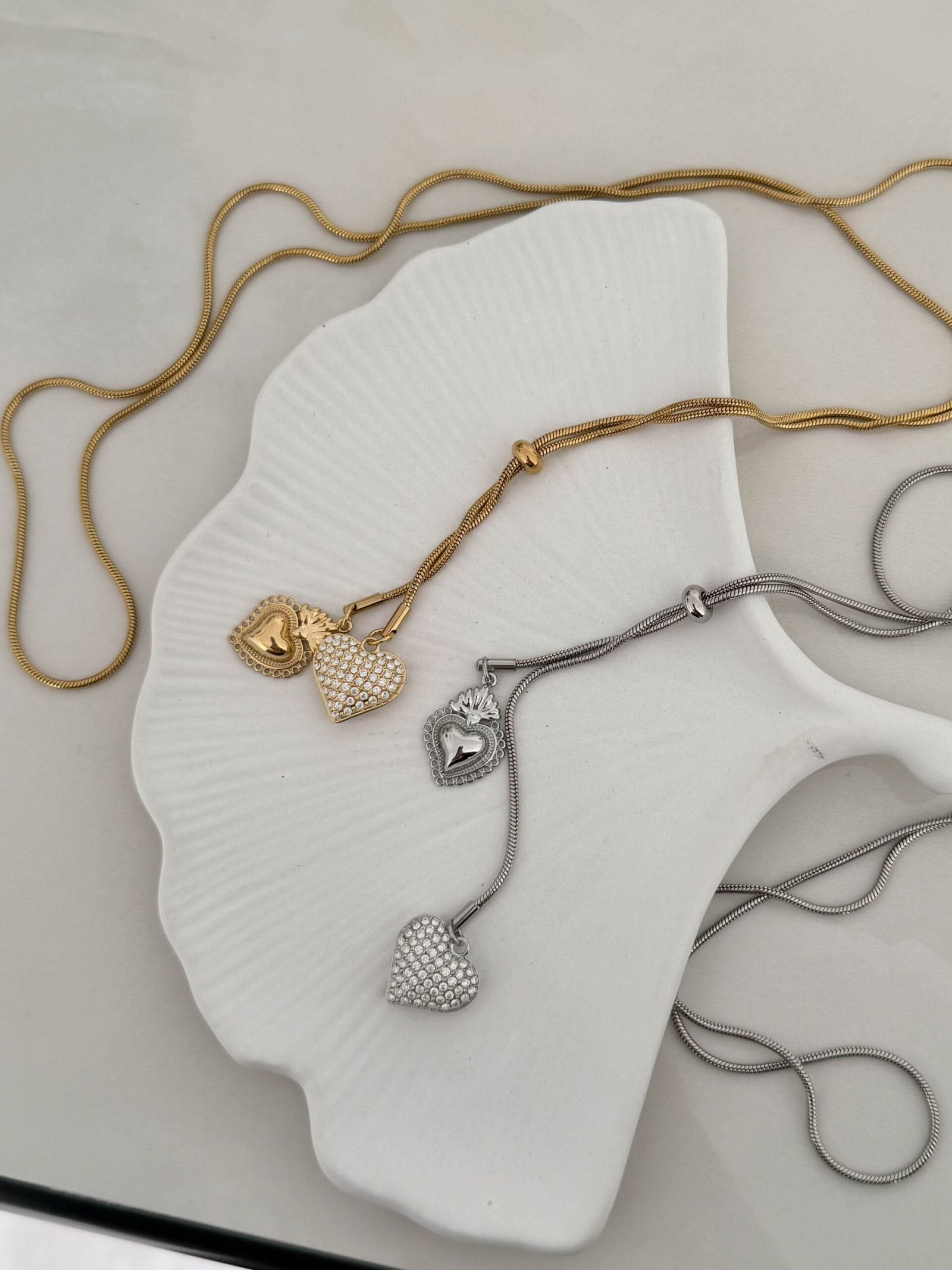 Το Luminous Hearts είναι ένα εντυπωσιακό, μακρύ κολιέ με δύο καρδιές στις άκρες,