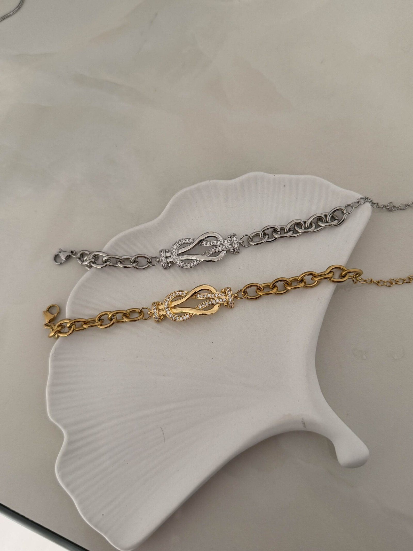 στολισμένη με στρας, δημιουργώντας ένα βραχιόλι που ακτινοβολεί φινέτσα και εκλεπτυσμένη πολυτέλεια.