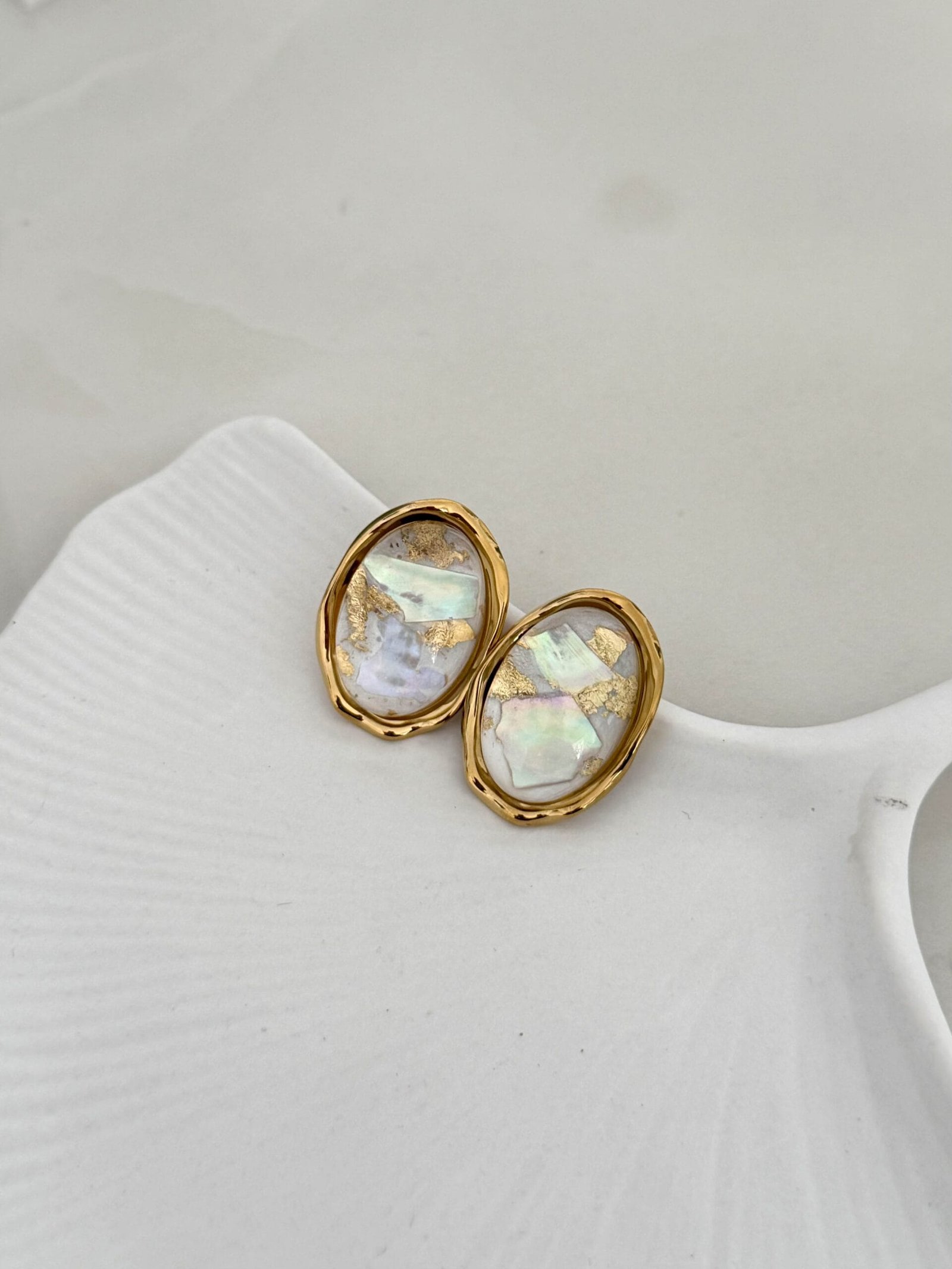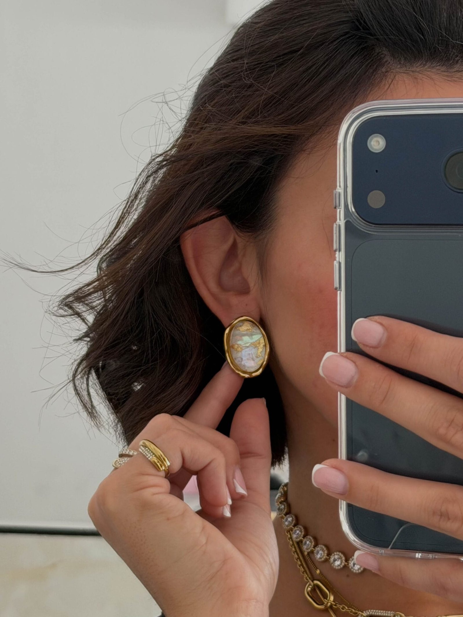 Η κεντρική πέτρα, με την ιριδίζουσα λάμψη και τα εγκλωβισμένα φύλλα χρυσού,