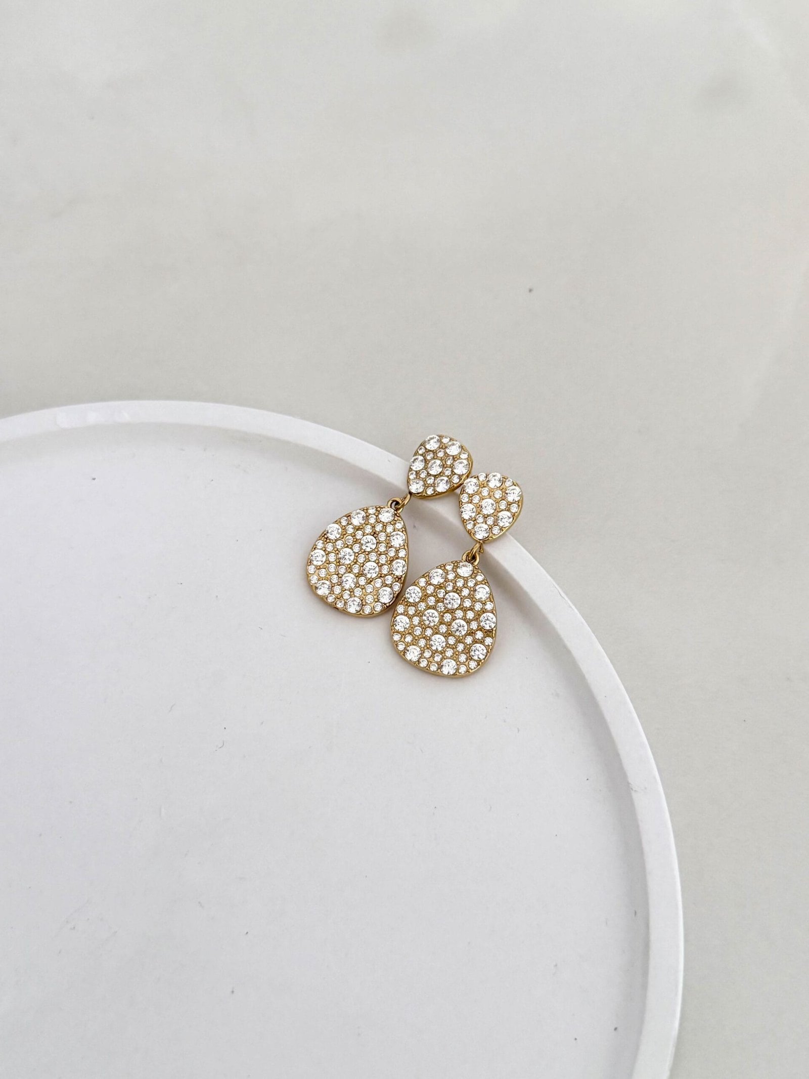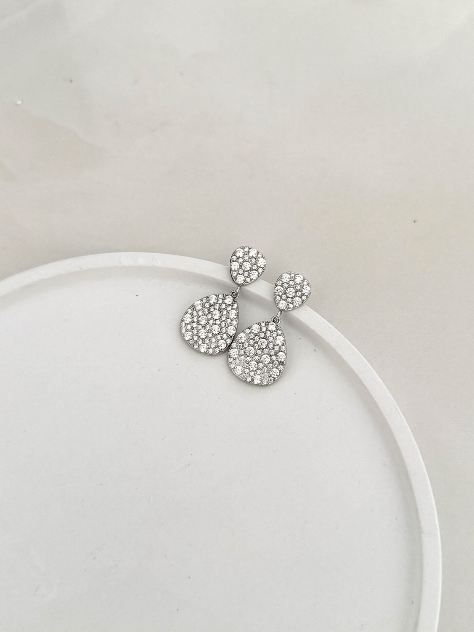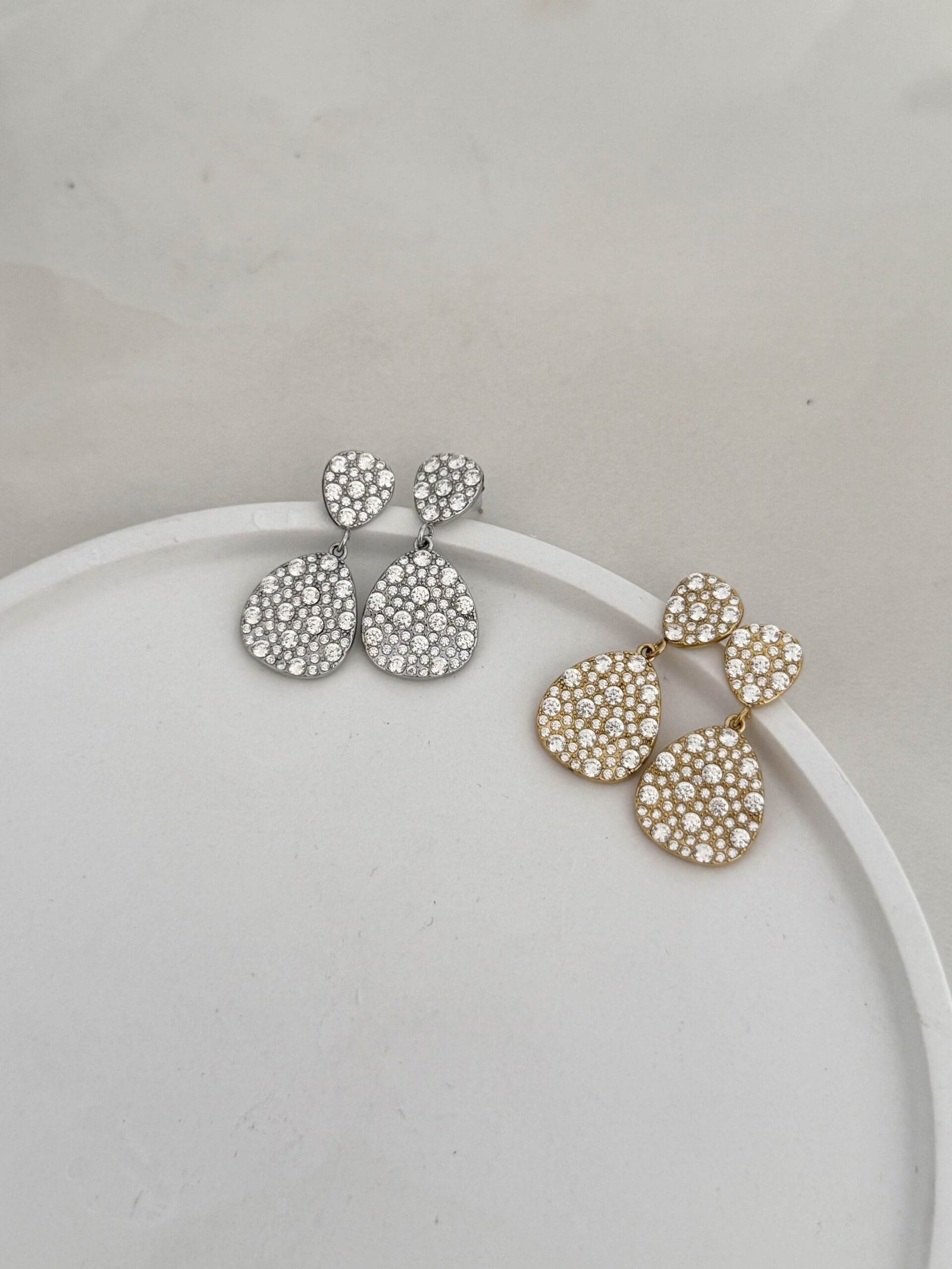 Κρεμαστά σκουλαρίκια με minimal γραμμή και σταγόνα στο τελείωμα γεμάτη στρας.