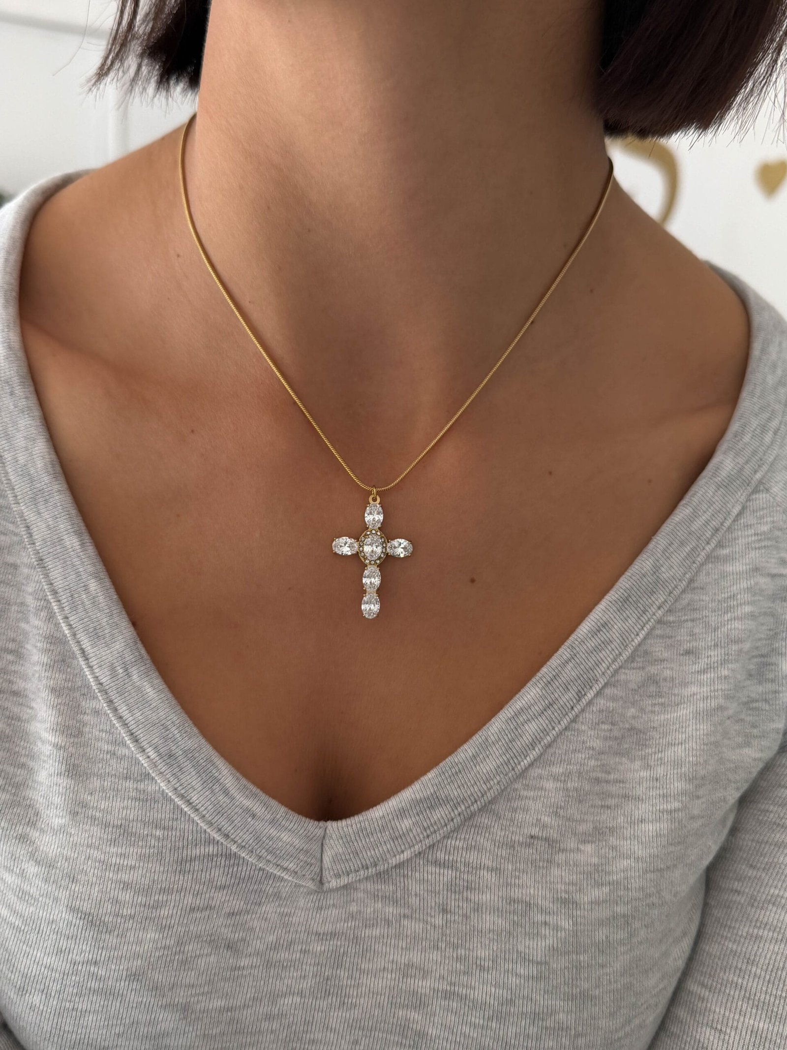 Ανέδειξε τη λάμψη σου με το Stellar Cross Necklace, ένα κομψό και εκλεπτυσμένο κόσμημα που συνδυάζει φινέτσα και έντονη λάμψη.