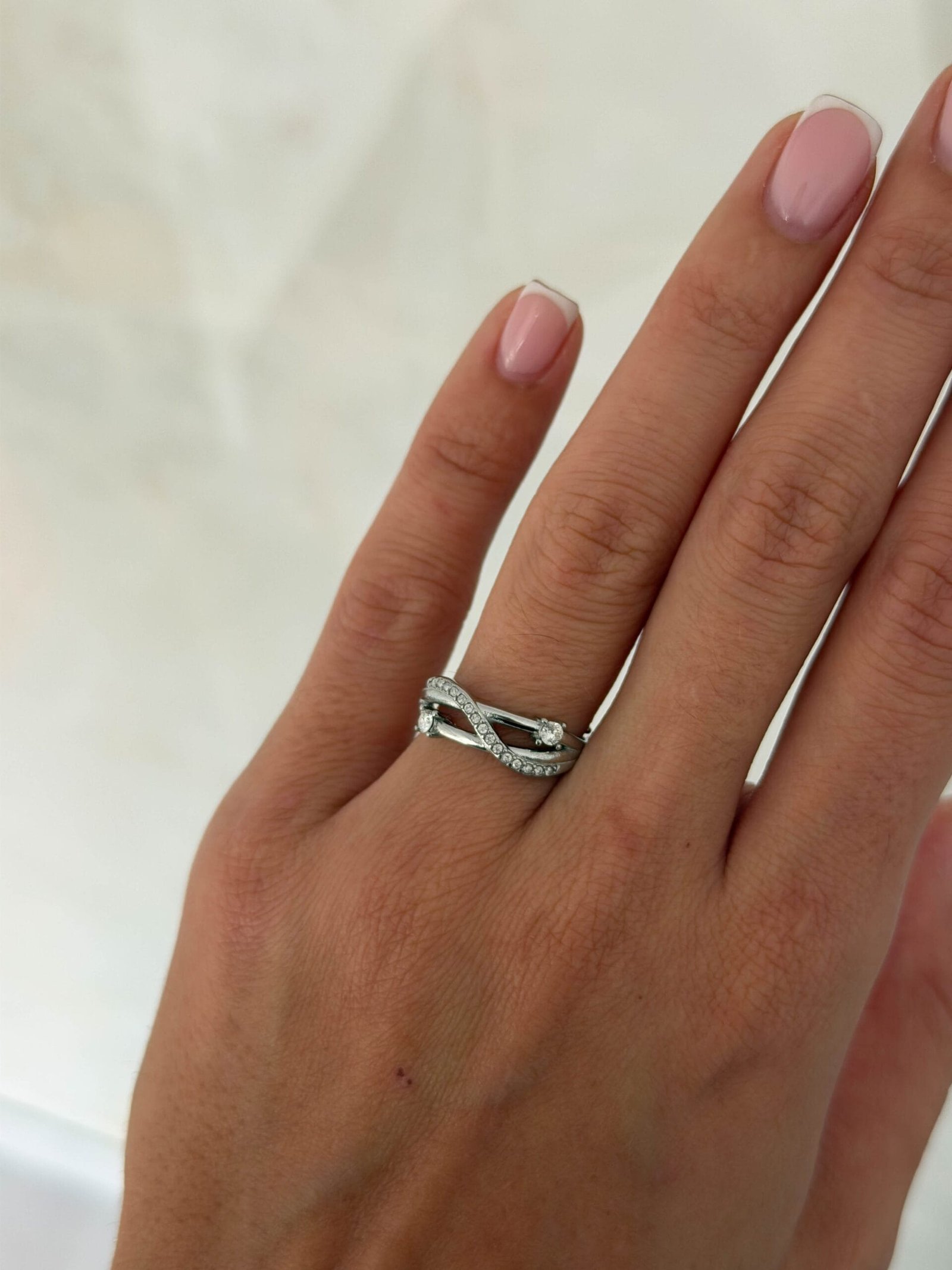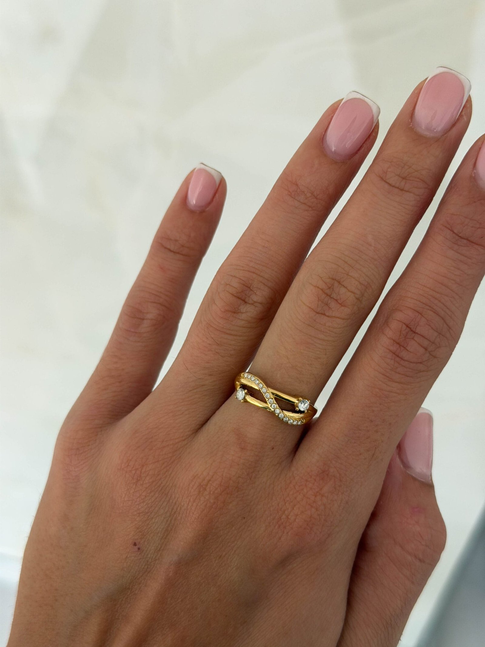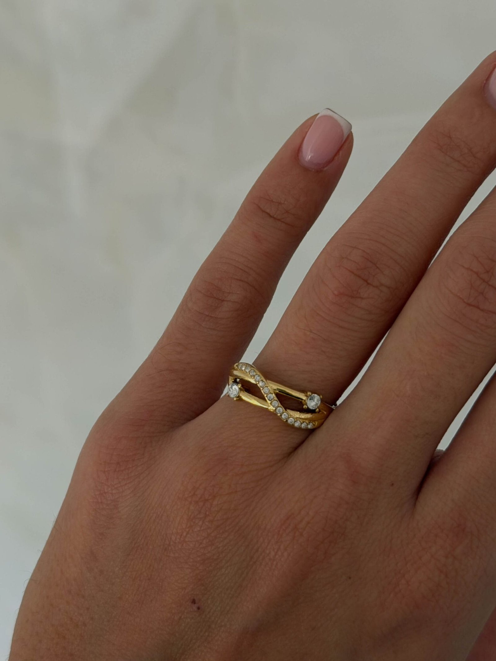 πλαισιωμένη από δύο λεπτές λωρίδες με ένα διακριτικό στρασάκι στην καθεμία.